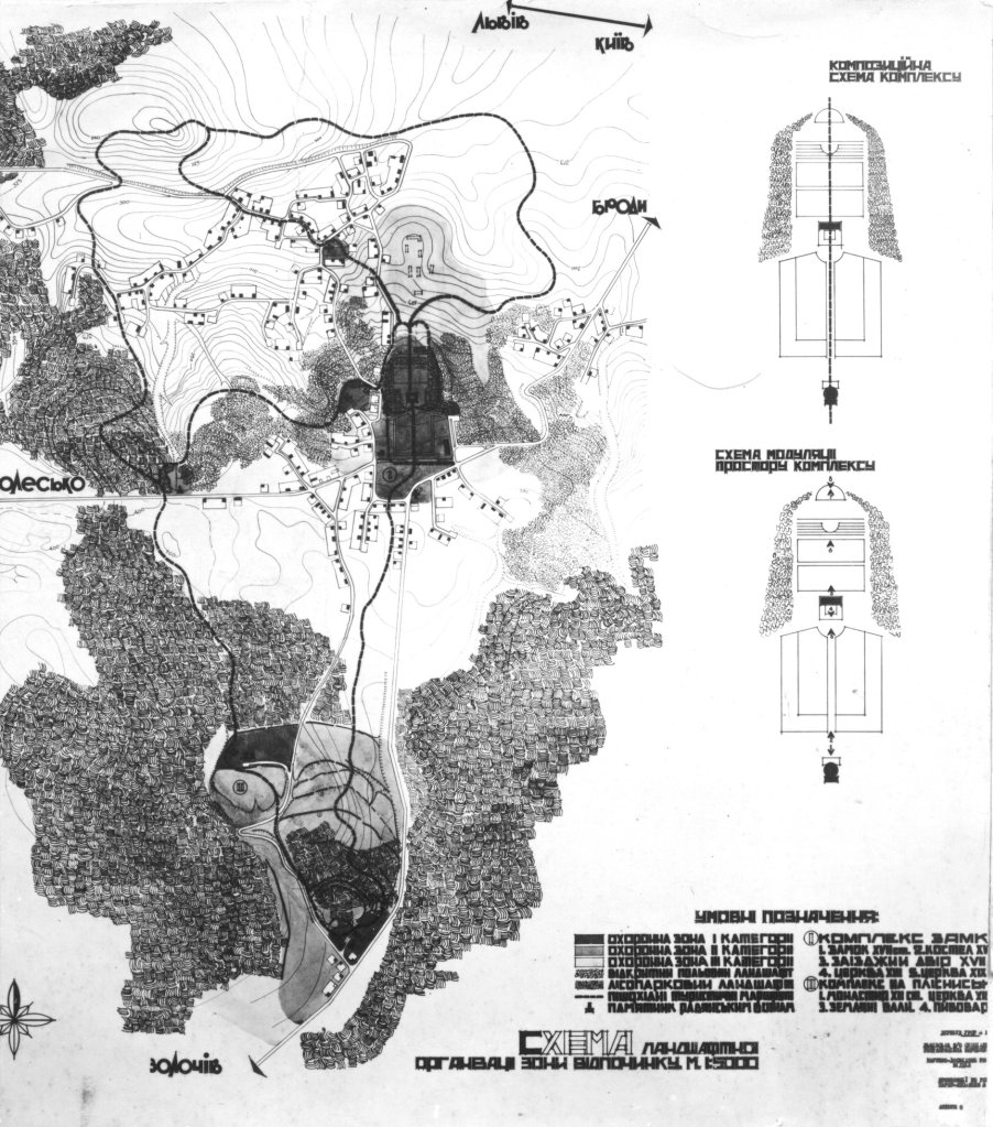 Було проведено плідне дослідження архівних та іконографічних матеріалів щодо формотворення системи садів / парку на території замку. Опрацьовано існуючий стан та детально самі проектні пропозиції, що супроводжувались масштабним макетом.