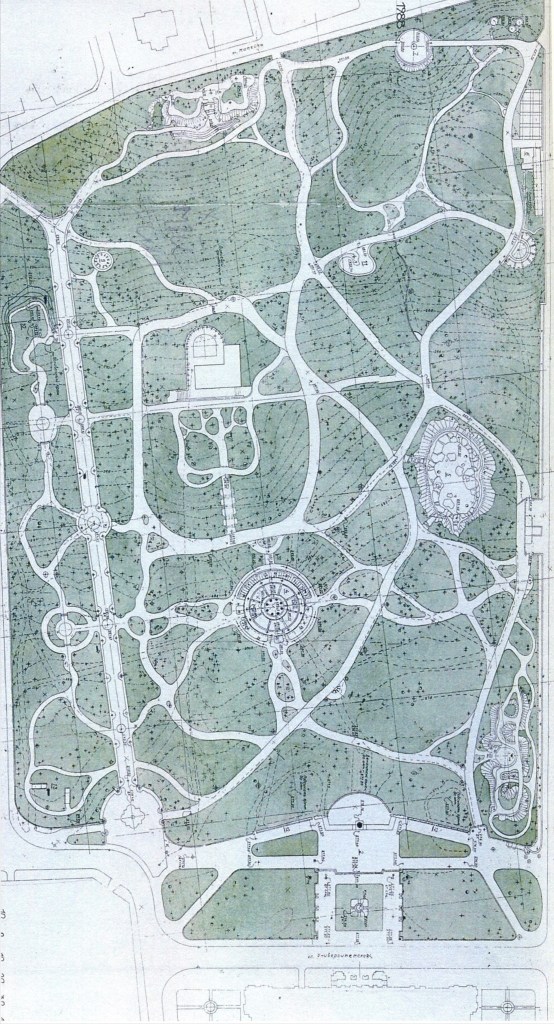 Проектом передбачалось відновлення та створення садів різного типу планування (регулярного, англійського і навіть модерністичного), що об’єднувались в один комплекс.