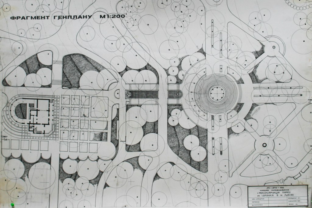 В першій половині 1980-х рр. розпочалася ґрунтовна реконструкція найстарішого міського парку в Європі – парку Івана Франка у Львові. Відповідно дана тема ставала напрямком опрацювання дипломних робіт студентами.