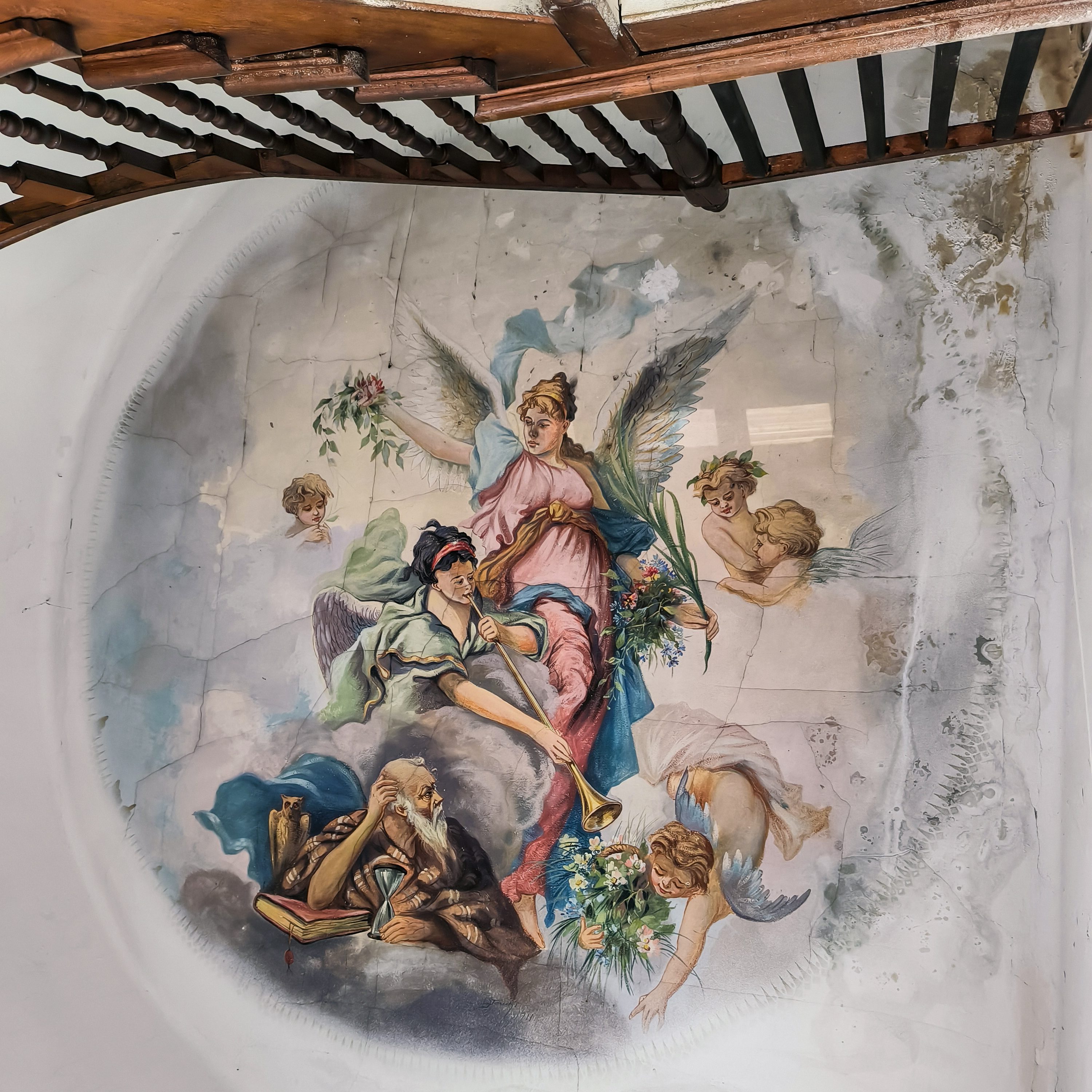 Сьогодні пропонуємо Вам зазирнути за браму будинку на вул. Опільського, 4, де стеля над сходовою кліткою прикрашена розкішним сецесійним плафоном із унікальним розписом. Більшість дослідників/-ць сходяться на думці, що тут зображений св. Єронім, який зачув сурму, що провіщає Страшний суд.
