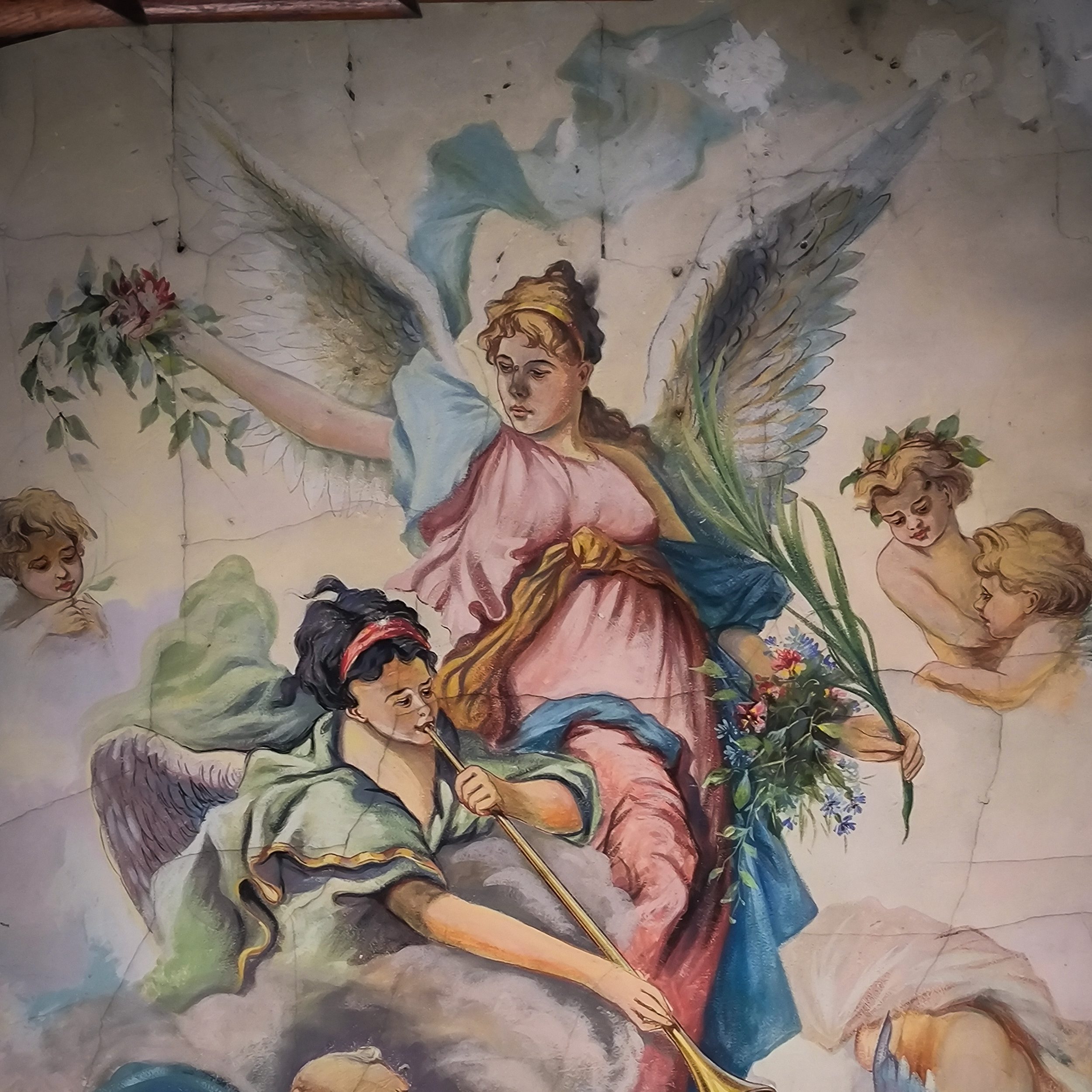 Дерев’яними скрипучими сходинами можна піднятися майже до самого розпису і роздивитися його зблизька.