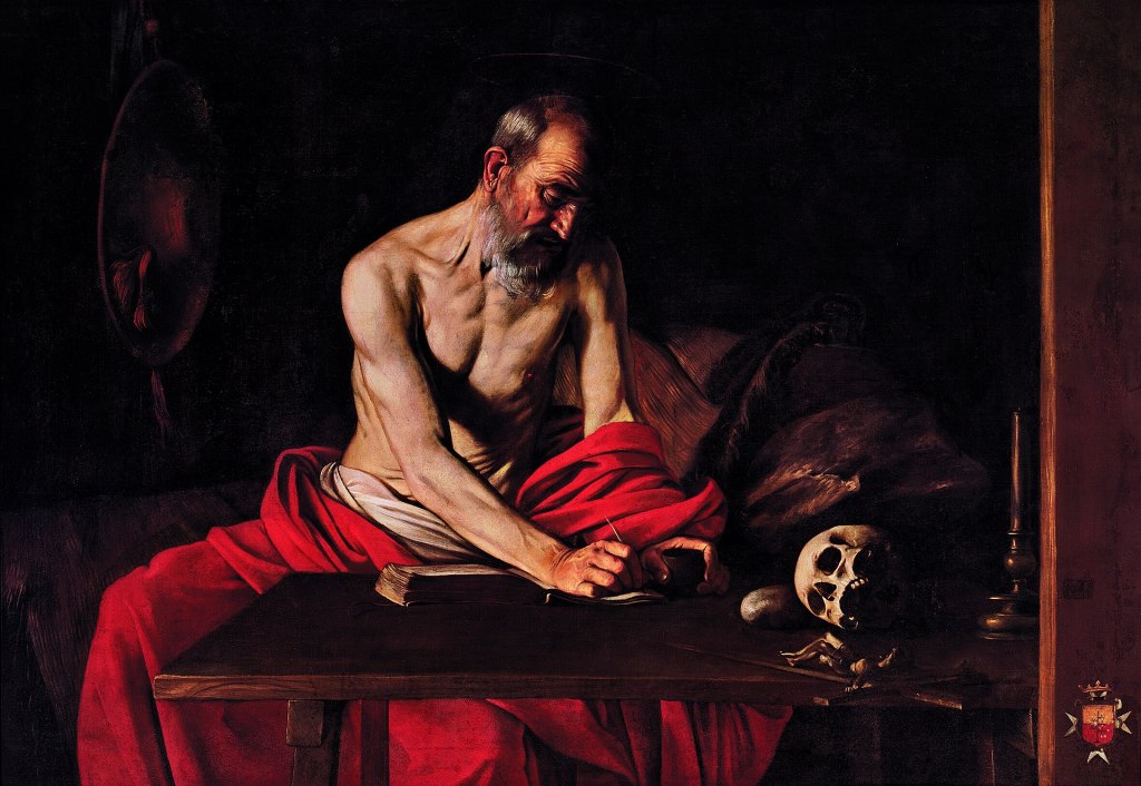 Зараз буде трішки контексту про самого св. Єроніма, аби ми краще зрозуміли символіку. Перше і найважливіше – Св. Єронім Стридонський переклав Біблію на латину, і його переклад, відомий як Вульґата, став першим загальноприйнятим текстом Святого Письма латиною. Він проіснував без жодних правок аж до 1979 р. Після коректувань, внесених у 1979 р., цей текст відомий як Неовульґата.