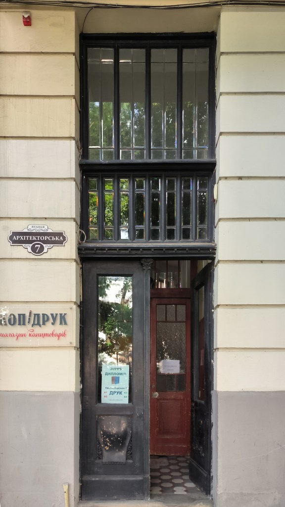 Тільки ступивши у тамбур, можемо довідатися рік побудови – 1906, який вибитий у бетоні на долівці. А в тих самих “багатостраждальних” цокольних приміщеннях, дозволу на заселення яких стільки років добивався Теодоровіч, зараз функціонує копіцентр, в якому зазвичай людно від студентів Політехніки, частина яких – то певно власне майбутні архітектори.