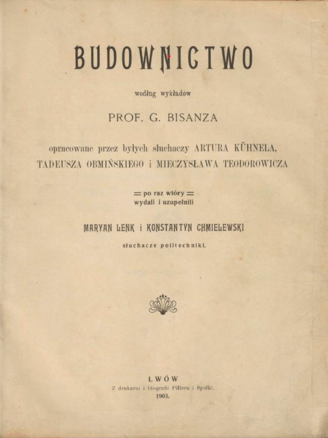 - Budownictwo według wykładów G. Bizanca – Budownictwo. Cz. 1, Bisanz, Gustaw (1848…, 1903 | Polona