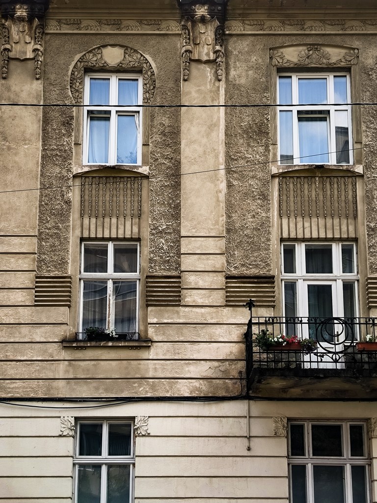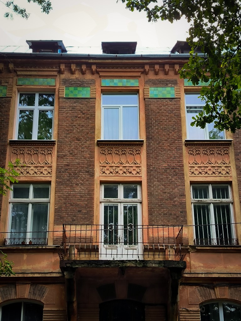 Більшість вікон третього поверху мають імітацію модної тоді підковоподібної форми, яка асоціюється із віяннями бельгійського Ар-Нуво. Вони обрамлені ліпниною у формі листя та плодів каштана – теж дуже характерного орнаменту для львівських сецесійних кам’яниць.