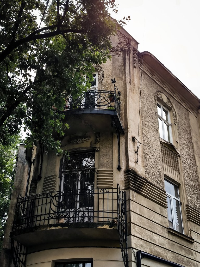 Неоготичні орнаменти проявляються і в ліпнині між вікнами другого і третього поверхів. Привертає увагу дуже витончене ковальство кронштейнів та балюстрад балконів. А от сецесія присутня у ніжно-зелених майолікових панно під карнизом фасаду.